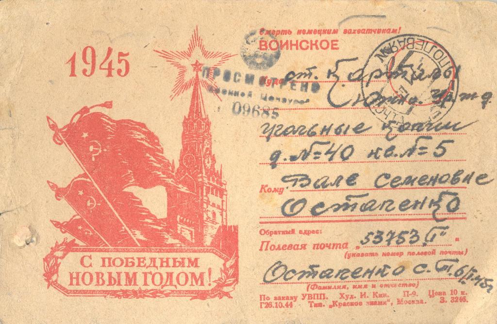 Дата отправления письма – 1 января 1945 г.