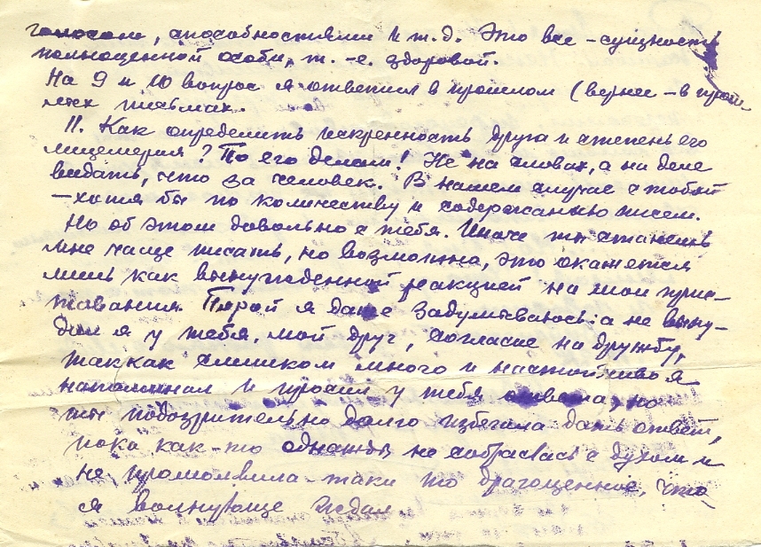 Все равно сижу сейчас «под носом» у фрицев и скучаю от безделья. Поэтому попробую сообщить свои соображения по тем 11 вопросам, ответы на которые ты мне любезно написала и просишь мои ответы.