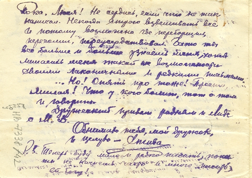 P.S. Теперь буду мало и редко писать, пока ты не начнешь часто и много писать, ей Богу!