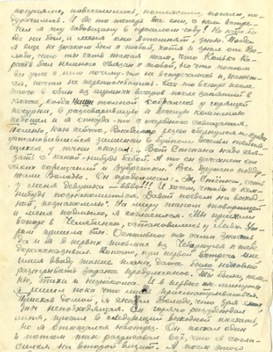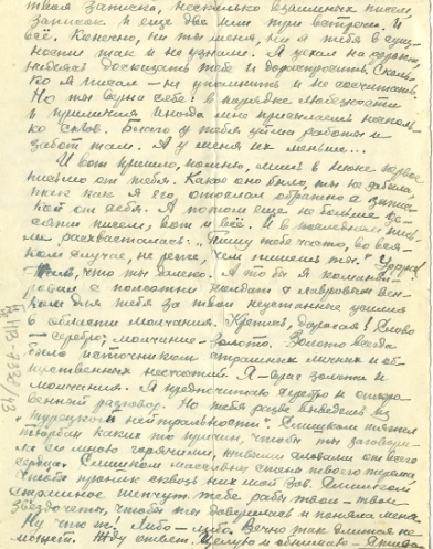 Пока, Люся! Не сердись, если что не так написал. Некогда строго взвешивать всё и потому, возможно, где переборщил, пересолил, переусердствовал. Зато ты всё больше и больше узнаешь меня, хотя лишаешь меня такой же возможности своими лаконичными и редкими письмами.