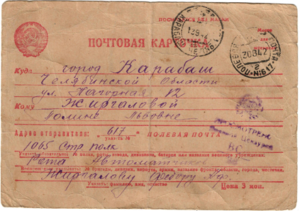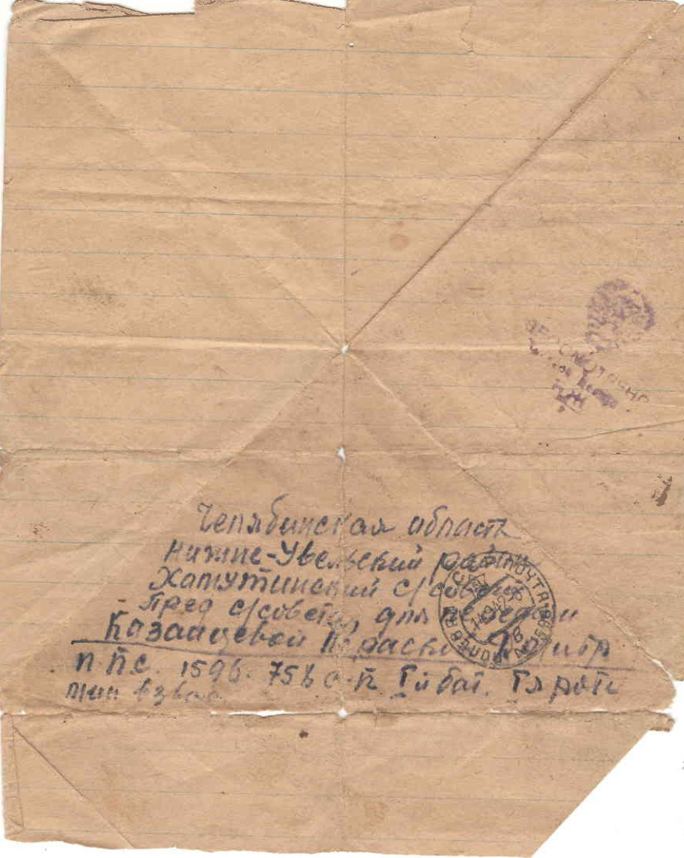 Номер полевой почты – Актюбинск, п/я 42, подраз. 19/5