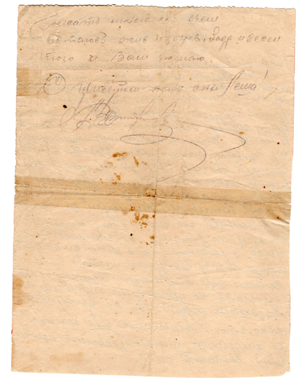 Пишите письма почаще я вам буду писать если буду жив и будет время с приветом квам ваш зять С. Башков