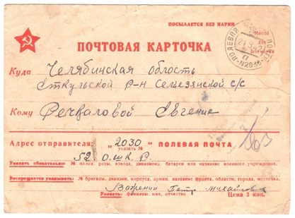 80. Почтовая карточка Евграфа Ивановича Речкалова
