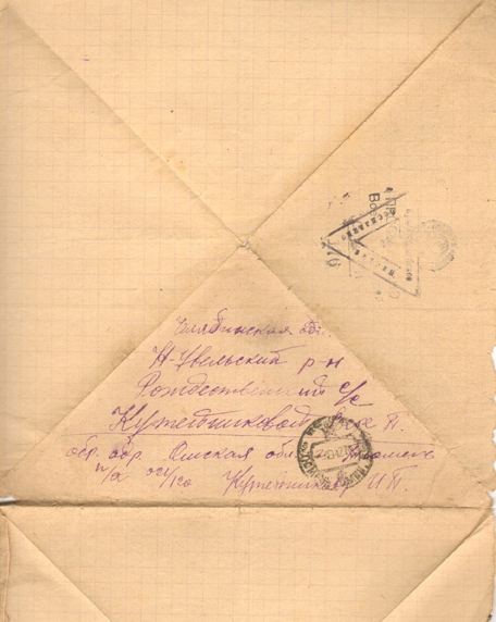 Адрес – Ст. Карталы, Южн. Ур. Ж-д, Угольные копи б. № 40, кв. 5