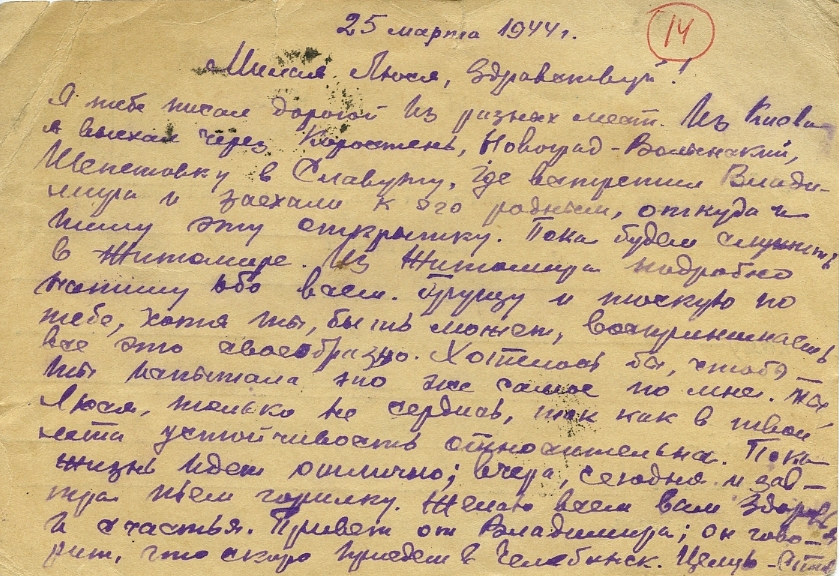 Письмо от 14 марта 1944 года