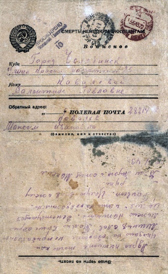 Адрес пишите точно как указано на обороте, не прибавляйте лишних слов. Только выше адреса можно написать. Действующая армия – и это не обязательно.
