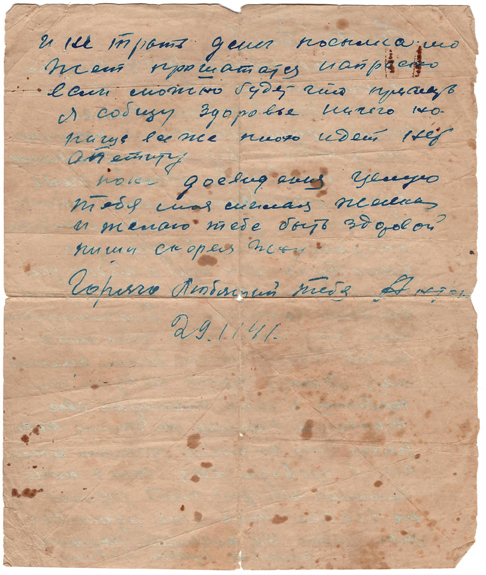 Дата отправления письма – 29 ноября 1941 г.