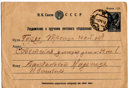Получатель – Клавдия Павловна Смирнова