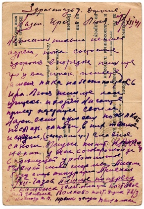 Дата отправления письма – 18 декабря 1941 г.