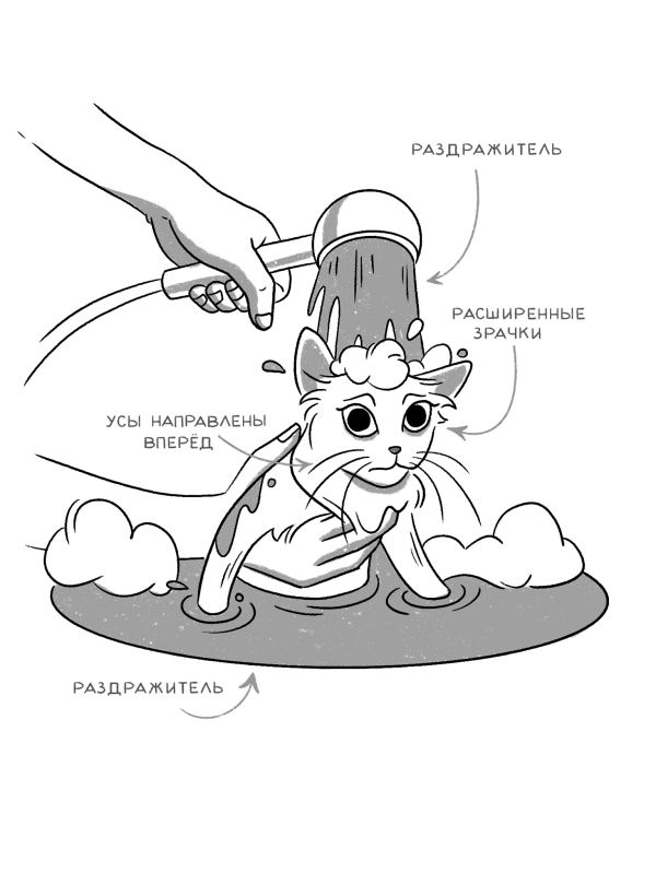 Когда кошка испугана или находится в неприятной ситуации, ее зрачки расширяются. Если вы устраните раздражитель, кошка почувствует себя в безопасности и ее зрачки сузятся. Так, например, во время купания кошачьи зрачки становятся большими и круглыми: многие кошки сильно боятся воды. Помните, что купание доставляет кошкам стресс, из-за которого у них могут возникнуть проблемы со здоровьем. Не стоит купать кошек: они регулярно вылизываются, что позволяет им поддерживать собственную гигиену и чистоту шерсти.