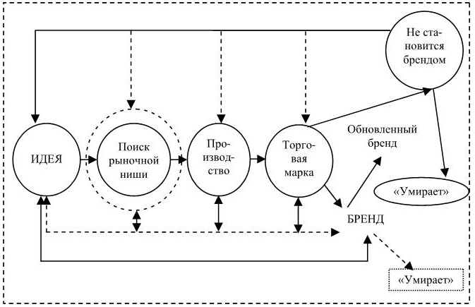 Взаимодействие на рынке потребителя, товара и производителя формирует основу для возникновения бренда как единого целого. Узловыми элементами бренда являются ТМ, бренд-имидж и брендинг.