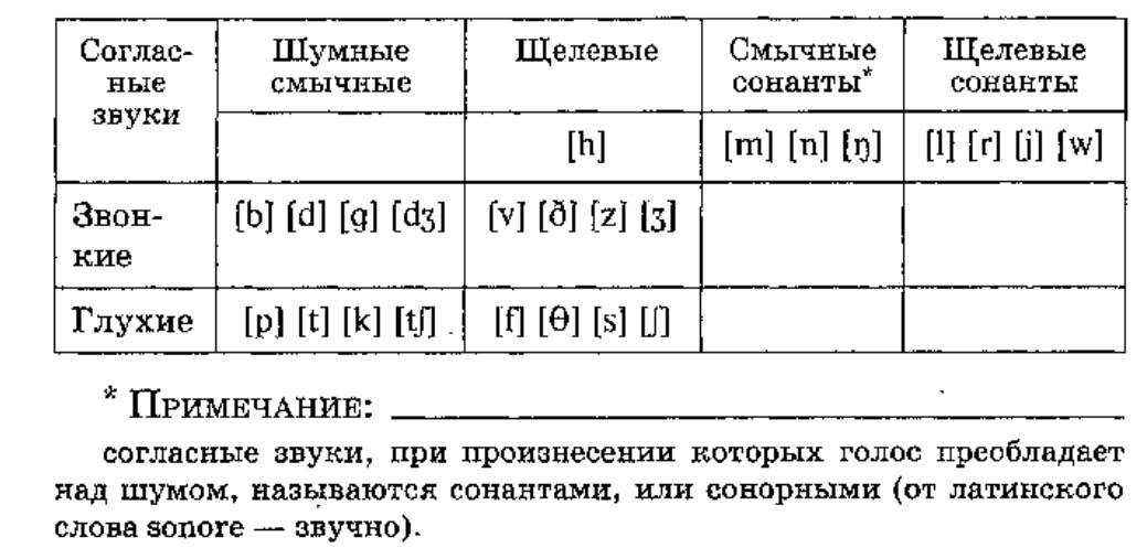 В английском языке 20 согласных букв, которые образуют 24 звука. Большинство английских согласных имеют несколько вариантов чтения в зависимости от конкретного буквенного окружения и положения в слове. Английские согласные звуки можно разделить в соответствии с некоторыми критериями. Для нас с вами самыми важными критериями будут:
