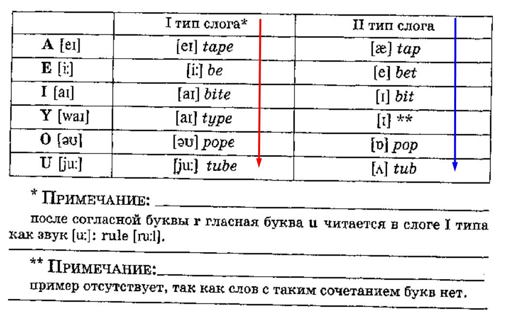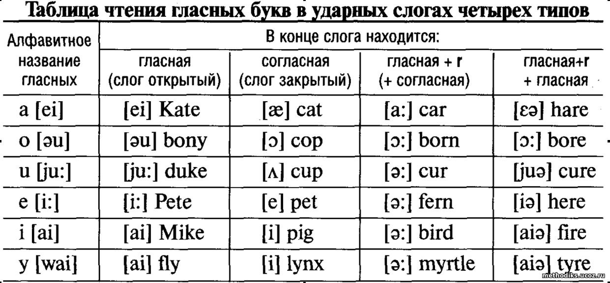 Слог (syllable) может быть: открытым, закрытым, слоги типа «гласная + r» и «гласная + r + гласная».