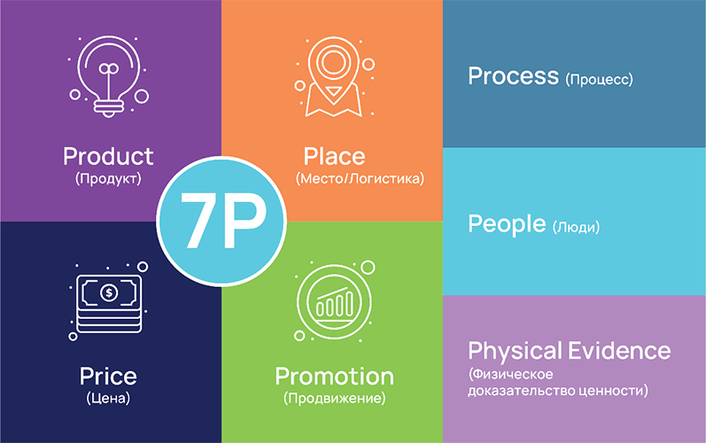 В крупных компаниях любят использовать модель 7Р – это дополнение 5Р за счет People (люди) и Physical Evidence (физические доказательства имиджа).