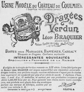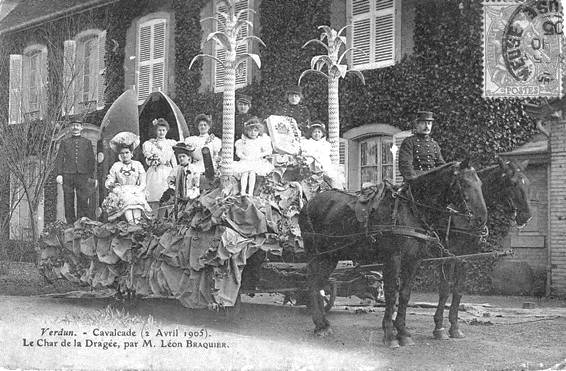 Эффектная презентация продукции фабрики Бракье – «Кавалькада драже» (1905). Автор идеи этой сладкой колесницы – Леон Бракье. Возможно, эта колесница принимала участие в знаменитых европейских карнавалах, во время которых зрителям бросали конфеты, цветы и другие сладости.
