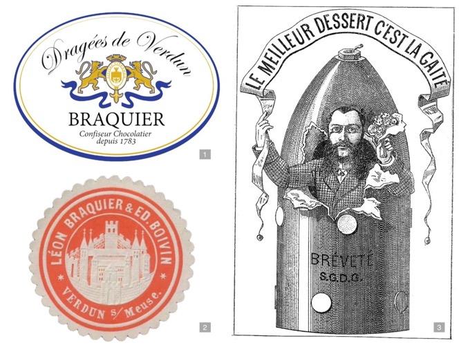 Современная упаковка миндальных драже Бракье сохранила свой дизайн в стиле ретро.