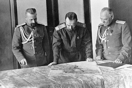 Как-то раз Николай признался министру иностранных дел Сазонову: «Я, Сергей Дмитриевич, стараюсь ни над чем не задумываться и нахожу, что только так и можно править Россией. Иначе я давно был бы в гробу»43. С императором можно было говорить только о чем-то приятном; все неприятное он пропускал мимо ушей, отворачивался к окну и переводил разговор на погоду. Эта особенность главнокомандующего приводила в отчаяние его приближенных: «Кто хотел бы заботиться исключительно о сохранении своего здоровья и безмятежного покоя, для того такой характер не оставлял желать ничего лучшего; но в Государе, на плечах которого лежало величайшее бремя управления 180-миллионным народом в беспримерное по сложности время, подобное настроение являлось зловещим»…44