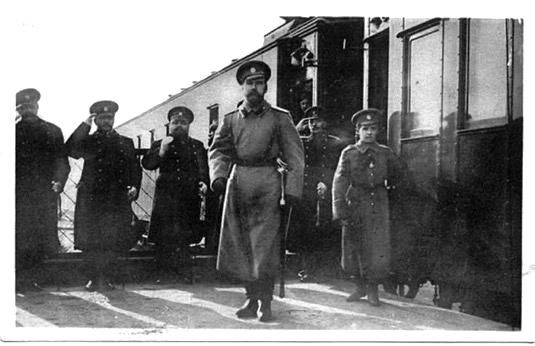 Николай II и цесаревич Алексей на могилёвском перроне (1915).