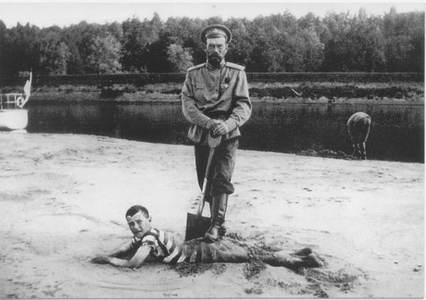 Николай II играет с сыном Алексеем на берегу Днепра. 1916 год.