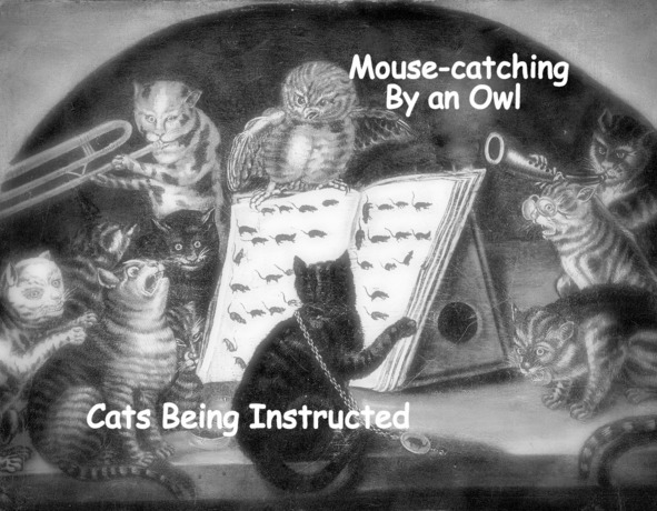 Внимательно рассмотрите картину. «Cats being instructed in the art of mouse-catching by an owl». Обоготите свой словарный запас важной и полезной лексикой, и вы сможете «ловить» информацию из горячих новостей даже в бегущей на экране строке. Желаю успеха!