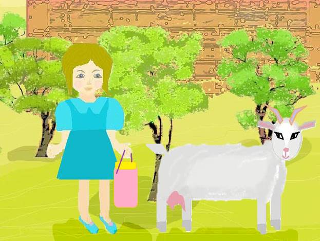 Подоив козу, Танюша отдала бабушке бидончик с молоком, а сама начала расчесывать Маню.