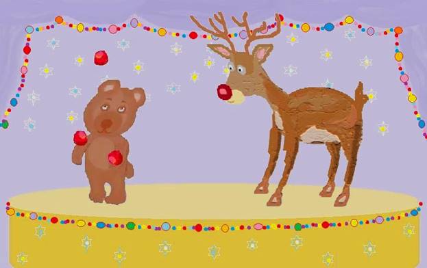 На сцену поднялся Мишутка. Он начал жонглировать яблоками. У Мишутки очень ловко получалось. Когда его номер закончился, то все ему аплодировали.