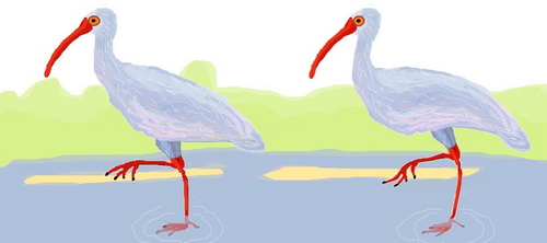 * * *Опустившись на зеленую траву, молодые ибисы пошли вдоль ручья, забавно шлепая ногами по воде.
