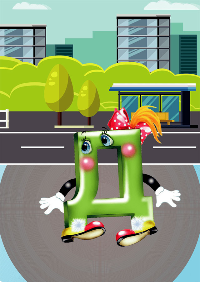 – Ой, как шумно, – закричали дети. Мы тебя, Азбука, совсем не слышим! -Конечно, дети, ведь мы с вами на улице Дорожной. Сейчас Вы познакомитесь с буквой Д.