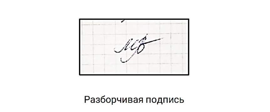 Поэтому не важно, понятна ли подпись, угадывается ли в ней фамилия, имя. Графолог смотрит на буквы, как на рисунок. Подпись может быть читабельной или абстрактной, для нас это не важно: