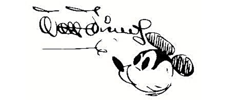 Автор подписи ассоциирует себя с масштабами, так как подпись большая. Он соединяет своё имя с изображением Микки Мауса, подчёркивая связь, отношения с этим персонажем. Однако, тот сморит снизу вверх: у них есть иерархия и взаимодействие.