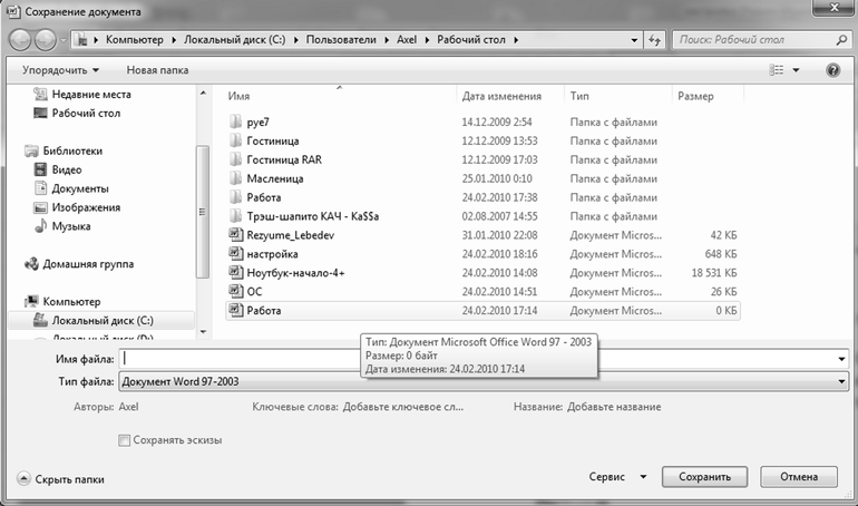 В появившемся окне Сохранение документа необходимо выполнить два основных действия: