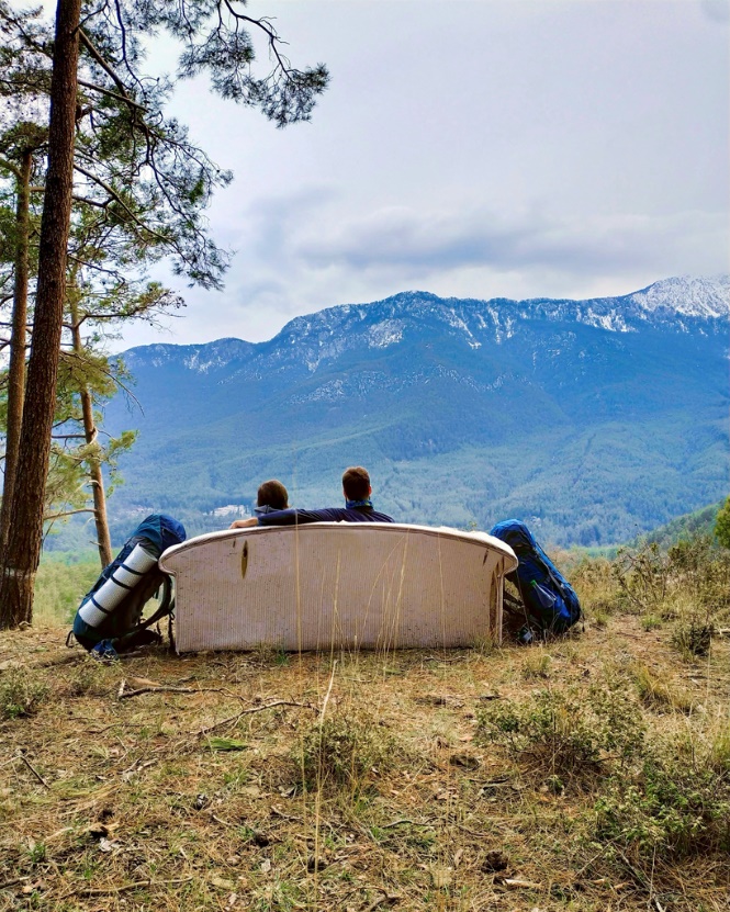 И чтобы как-то успокоить свою разыгравшуюся фантазию, стараюсь переключаться на приятные моменты, которые произошли с нами за прошедший день. Сегодня, к примеру, когда мы только вышли на тропу, сразу же на склоне увидели диван. Ну что, прямо здесь и остановимся! Вид шикарный, места для отлеживания боков есть, шутили мы. И вполне могли бы взять и остаться, если бы не прогнившая конструкция дивана, который не смог задержать нас более, чем на час. Мы присели, наслаждаясь моментом, представляя, что когда-нибудь придет и наше время жить оседлой жизнью, и мы обязательно поселимся в доме с красивым видом. И может быть тоже вынесем на улицу диван, чтобы ночью на нем можно было валяться и смотреть в звездное небо.