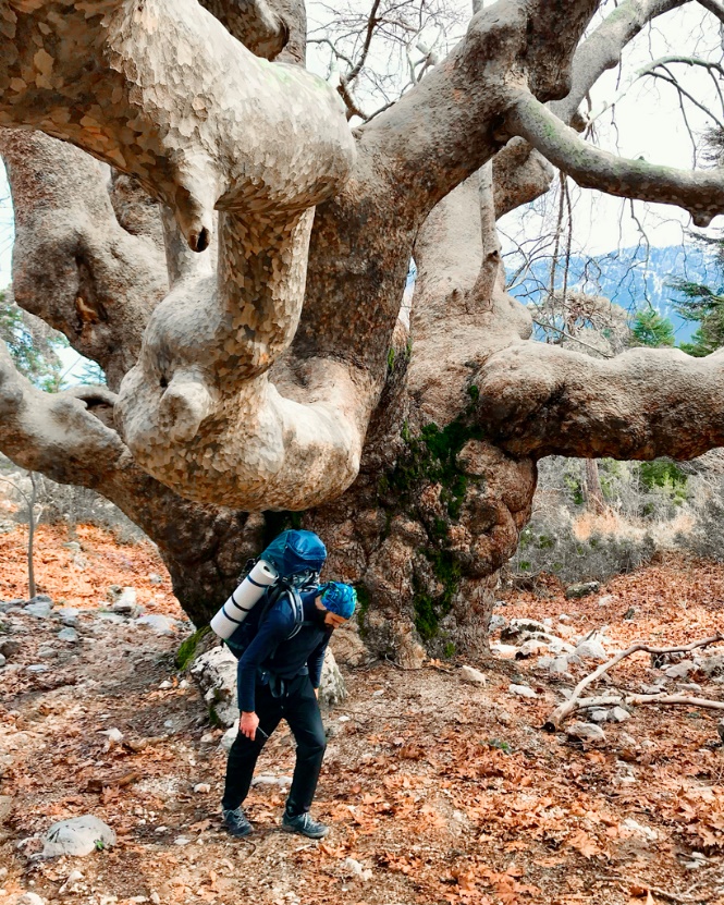 Но шепот исходит еще и от древних платанов – деревьев-долгожителей внушительных размеров. В некоторых уголках Турции встречаются уникальные экземпляры, возраст которых превышает 2 000 лет. Самый крупный платан находится в долине Бююкдере (тур. Büyükdere) на европейском берегу Босфора. Но мы встречали впечатляющих старичков и на тропе. Эти вечные свидетели – камни и платаны – и каждый шаг на сегодняшнем участке как возможность услышать их перешептывание в едином хоре природы, где прошлое соединяется с настоящим.