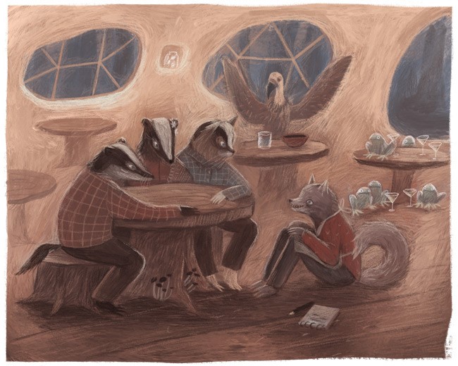 – …протоколировать беседу воробушка с Мышью Психологом, ежедневно исписывать груду бересты – да это просто работа мечты! Только что же ты зеваешь, а, Барсук Старший, ведь всё это так увлекательно?