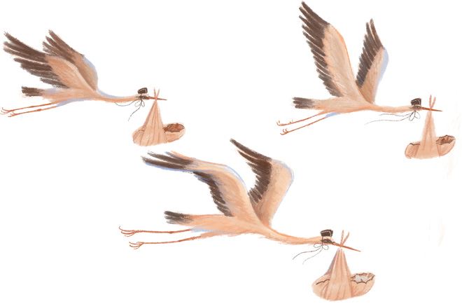 – Да что вы всё пишете, что же это такое?! – кудахчет аистесса, как курица. – Немедленно перестаньте писать и ложитесь на спину на пелёнку!
