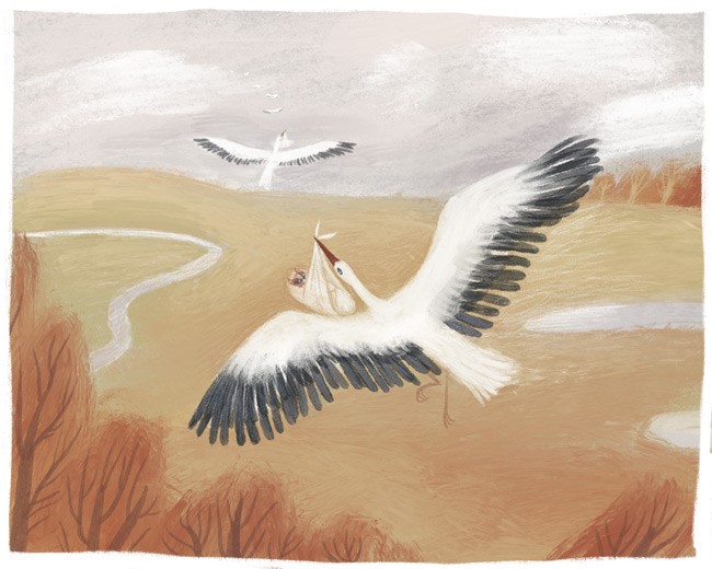 – А ты попробуй посмотреть вверх, на лапы твоего аиста. Они яркие. Ты сможешь их разглядеть.