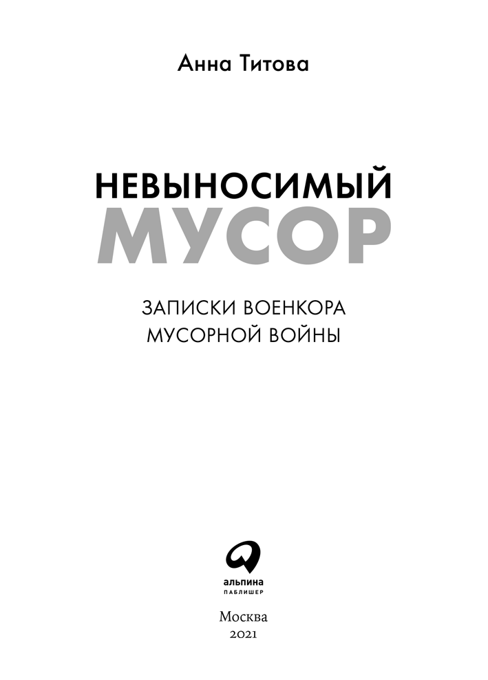 Меня зовут Аня, и я написала книгу о мусоре. Когда-то я окончила физико-математический класс в Воронеже, чтобы переехать в Москву учиться на журфаке МГИМО. И пока мои бывшие одноклассники проектируют ракетные двигатели и подсчитывают экономическую эффективность аглококсодоменного производства, я пишу репортажи про сирийских беженцев, русских в Аргентине и ярославских ученых, изучающих рачка Polyphemus pediculus. В общем, про то, что нахожу истинно интересным. Пристрастие к странным историям когда-то связало меня с моим жизнерадостным редактором. Он настаивает, что в книгах, в отличие от репортажей, обезличенный текст вас не зацепит. Так что вот вам моя личная история взаимоотношений с мусором.