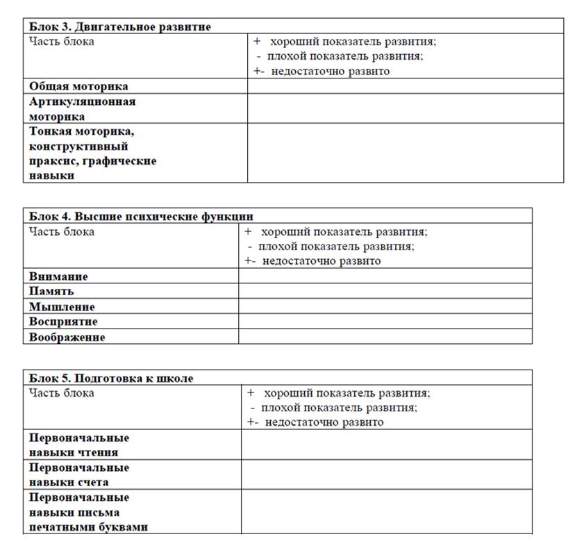 Большая часть терминов в таблице требует комментариев специалистов, которые работают с ребенком, чтобы для родителей было доступно, как именно и какой функции мы должны уделять внимание.