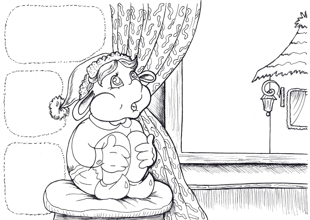 Нарисуй в окне то, чего больше всего боится гномик. А потом слева от гномика нарисуй три предмета, которые помогут Томми справиться с его страхом, придадут ему смелости.
