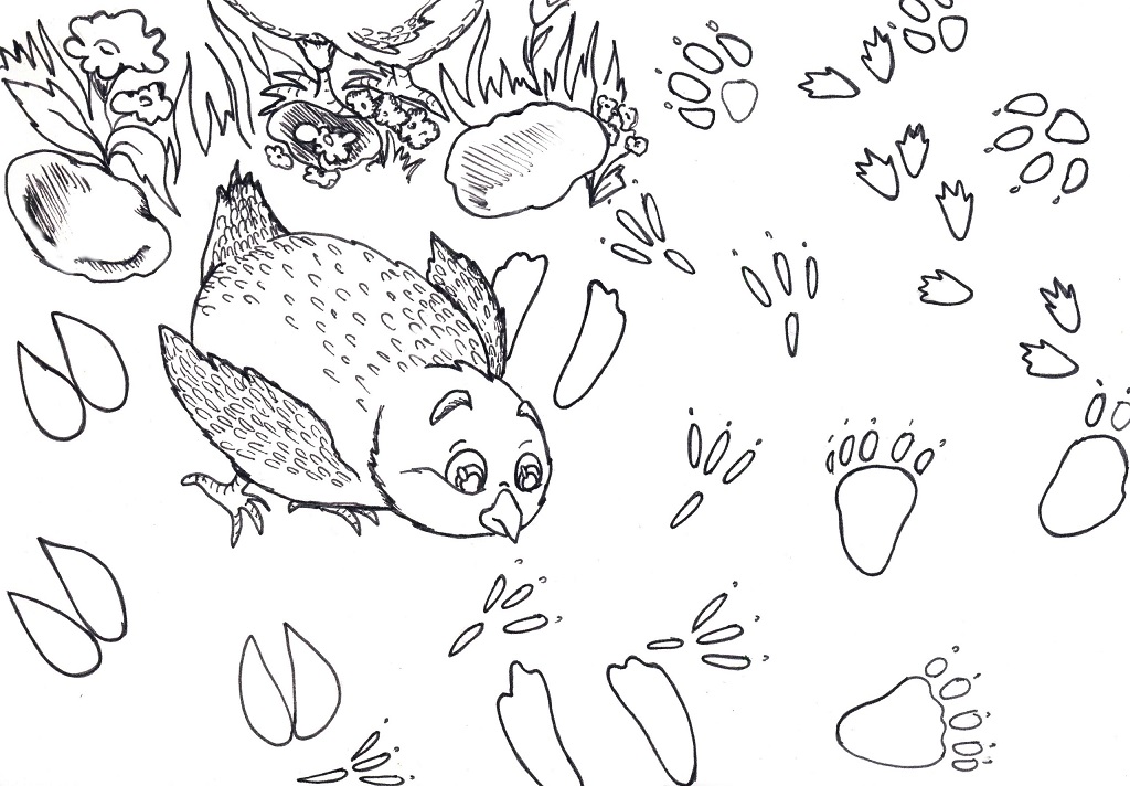 Цыпленочек потерялся, помоги ему найти маму по следам.
