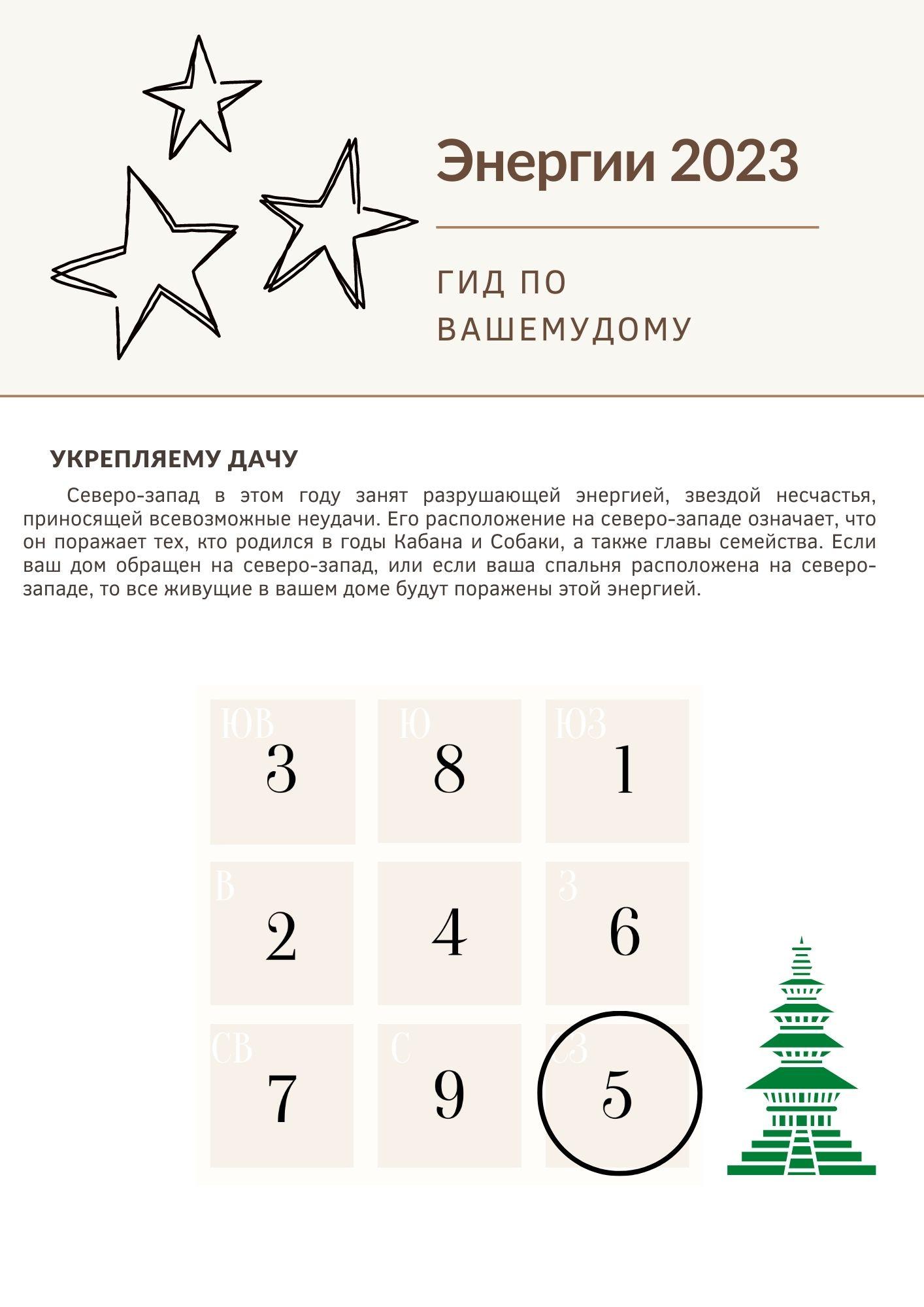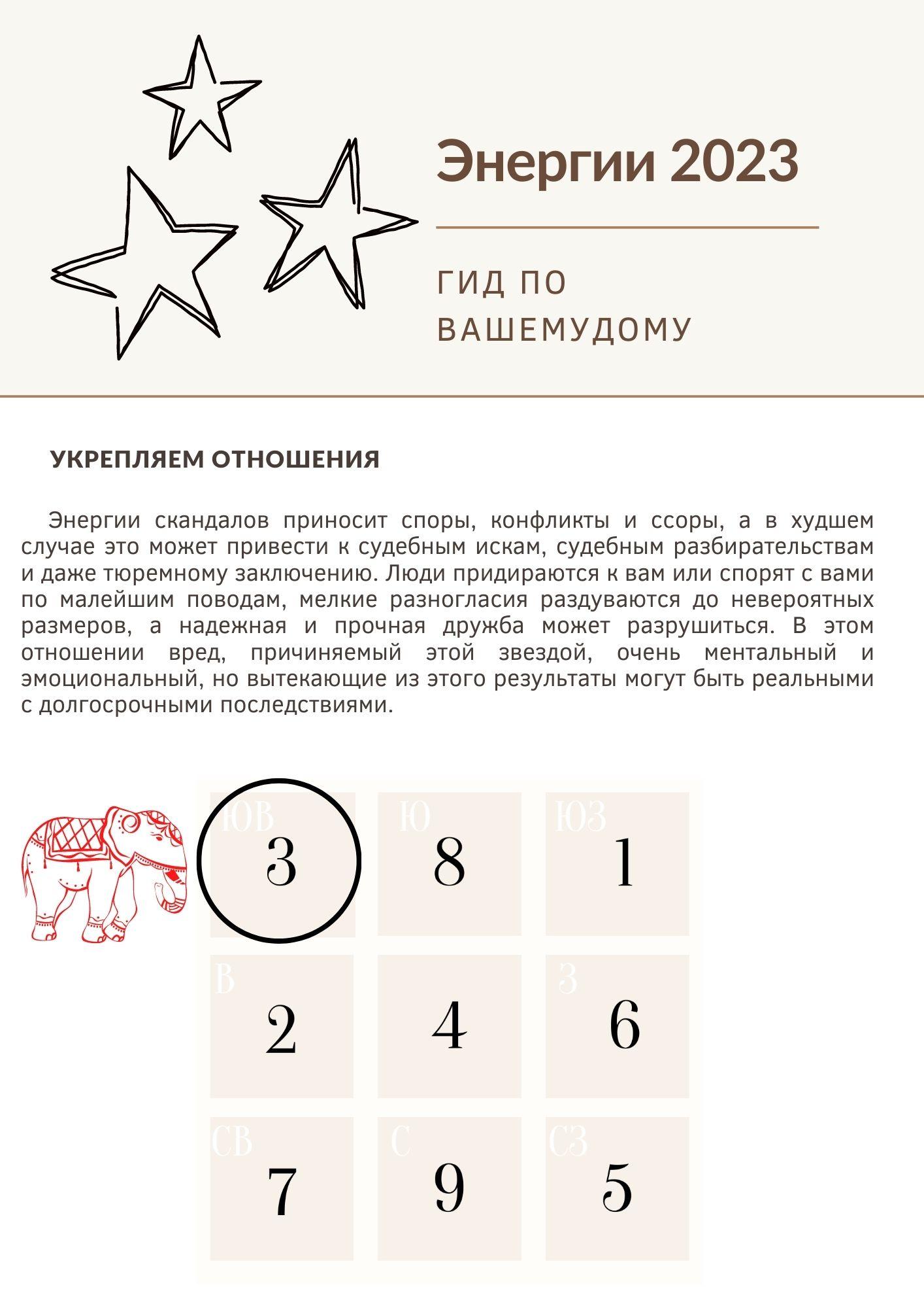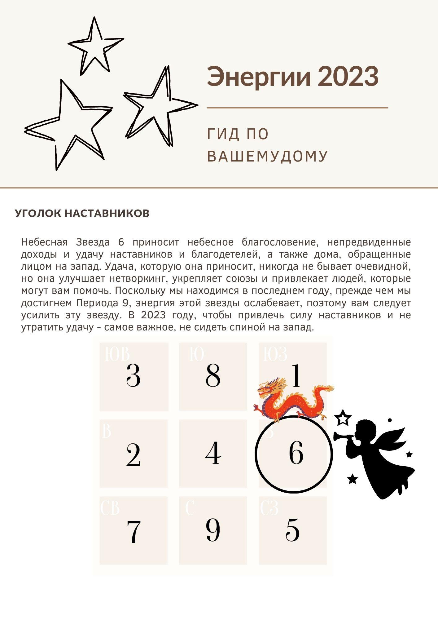 Самая важная часть года заключается в обновлении фэн-шуй вашего дома. Обычно это делается после 21 декабря , когда начинает меняться переход от энергии предыдущего года к энергии наступающего года. Изменение начинается с того, что Тай Суй и 3 убийства вступают в силу с 21 декабря 2022 года, а ежегодные летающие звезды вступают в силу с 4 февраля 2023 года .2023 год – последний год 8-го периода, прежде чем мы перейдем к 9-му периоду в феврале 2024 года. Хотя 9-й период еще не начался, всегда есть переходный период, когда энергии годовых звезд трансформируются, и именно поэтому Фэн Шуй на 2023 год особенно важен. Нужно учитывать и готовиться к переходу на новый период.