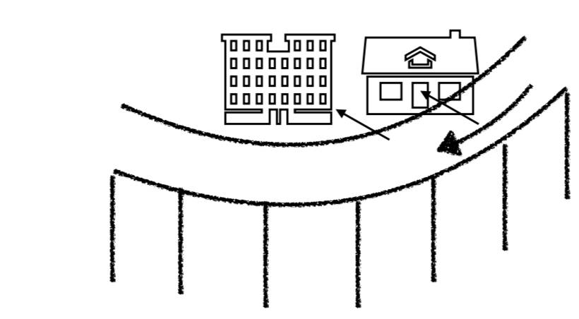 Дом, который находится на юге (лицом к северу), является домом элемента Огня, поэтому, если здание напротив вас имеет криволинейную форму и преимущественно синюю или черную, обозначающую воду , энергия, направляемая на ваш путь, представляет собой энергию убийства. Таким образом, он должен быть нейтрализован энергией элемента Земли. Решите эту проблему, построив кирпичную стену .
