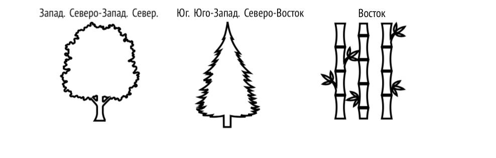 Север. Юго-Восток. Восток. (Форма деревьев: Волнистая). Символизирует элемент Воды.