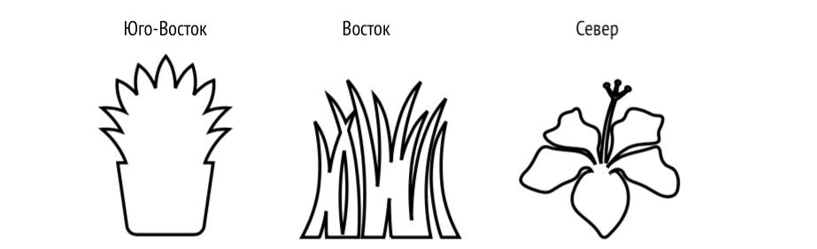 Желтый, оранжевый цвет – Северо-Восток, Юго-Запад, в секторах земли подходят эти цвета.