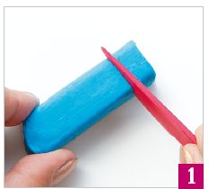 1. Поместите брусок пластилина на подложку и пластиковой стекой отрежьте кусочек нужной величины.