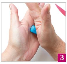 2. Поместите шарик на поверхность подложки и приложите к нему подушечку указательного пальца правой руки так, чтобы она закрывала примерно половину шарика.