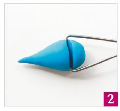 4. Стекой в форме треугольной петли разрежьте деталь на две одинаковые части, проводя разрез параллельно плоской стороне лепешечки.