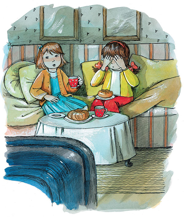 Но у Авроры уже пропал аппетит. Она заслонила глаза всеми десятью пальцами, но иногда подглядывала в щёлочку, что происходит, а потом снова пряталась за пальцы.