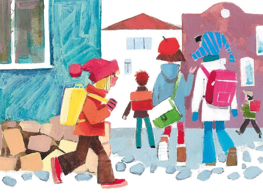 И Гюро отправилась в путь. Рюкзачок у неё был не такой уж тяжёлый, но всё-таки в нём лежали три книжки и пенал, так что всё, как и должно быть у настоящей школьницы. Она шла и шла. По дороге ей навстречу попадались дети, которые направлялись в её школу. Они были старше Гюро, поэтому она была с ними не очень хорошо знакома, но видела их раньше, и они её тоже. Они были заняты разговорами и проходили мимо, не замечая Гюро. Это было хорошо, потому что иначе они бы спросили, почему это она идёт не в ту сторону.