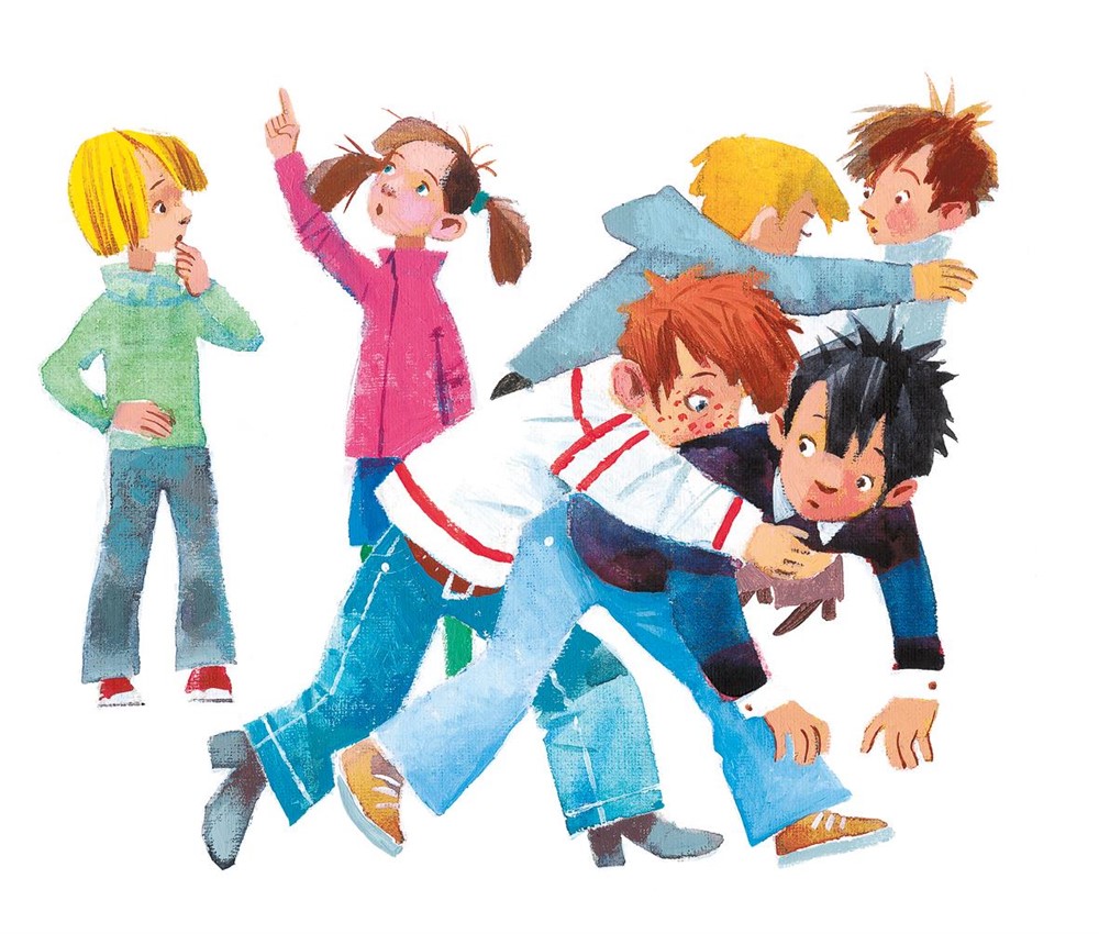 К концу урока она отдышалась и снова набралась сил. Она побегала по двору с Эллен-Андреа и другими девочками из своего класса, а потом они попрыгали через скакалочку, а ещё надо было и поговорить. За всеми этими занятиями Гюро не забывала поглядывать в сторону Сократа. Она так привыкла за ним присматривать, что делала это уже не задумываясь. Сократ и Ларс стояли вдвоём в углу двора отдельно от всех. Сперва к ним никто не подходил и, значит, можно было не беспокоиться, поэтому Гюро продолжала носиться с девочками, но когда она в следующий раз к ним обернулась, то увидела, что вокруг них собралось много мальчиков. Может быть, они просто подошли посмотреть, может быть, во что-то играли, но тут Гюро посмотрела на лицо Сократа и поняла, что он испугался.